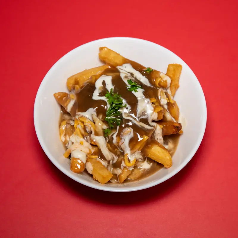 Indulge in the ultimate comfort food with poutine—crispy fries topped with rich, savory gravy and melted cheese curds.